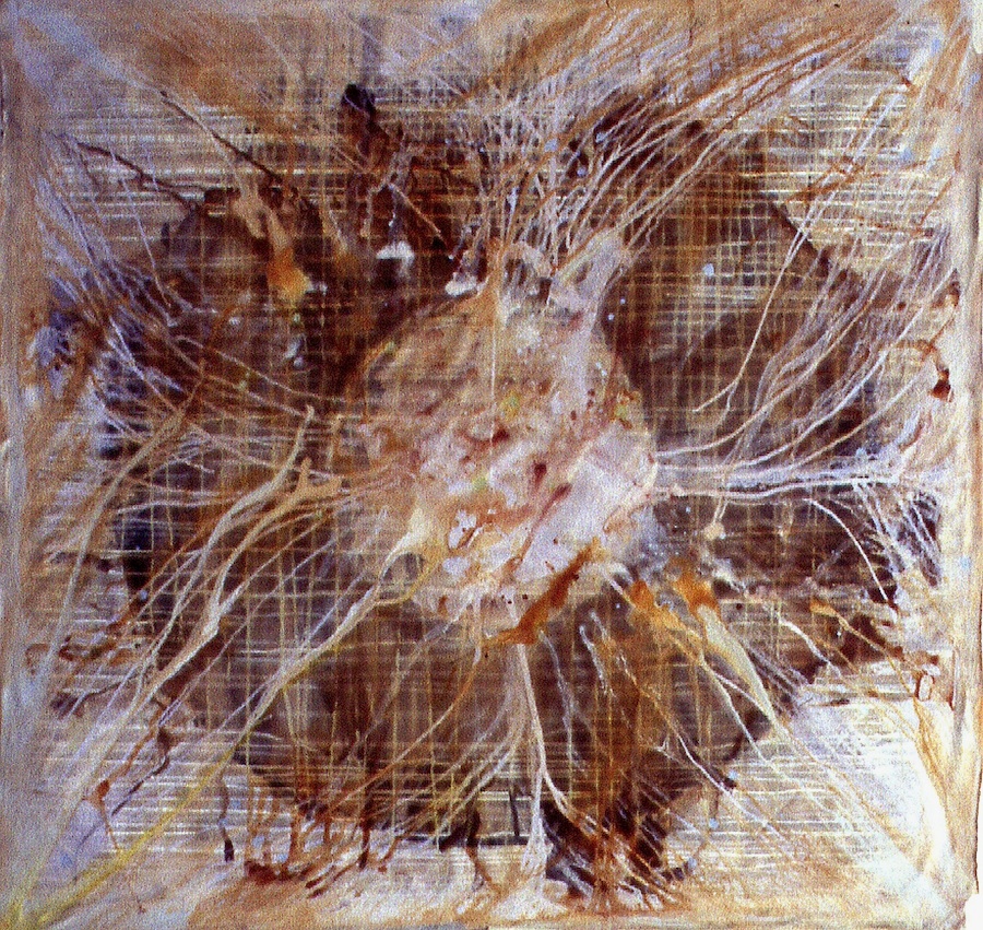 brushed and poured paint on muslin. 108″ x 108″ 1998