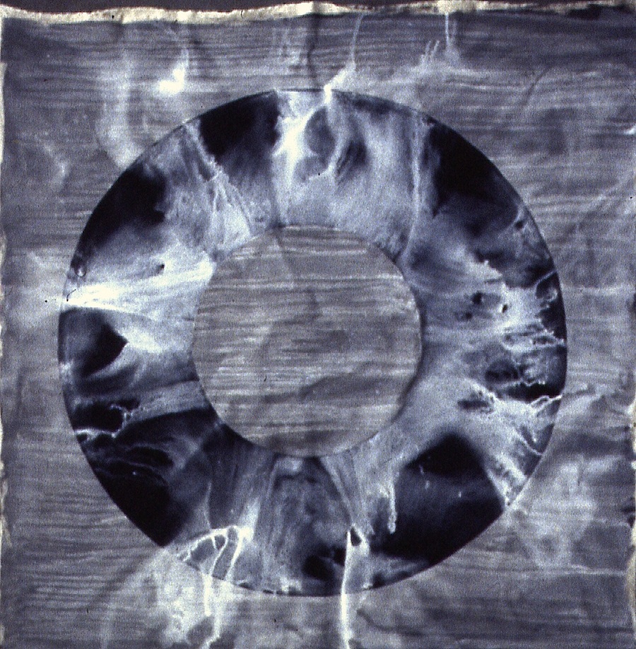 Circle (grey) paint on muslin 48″x48″ 1998.