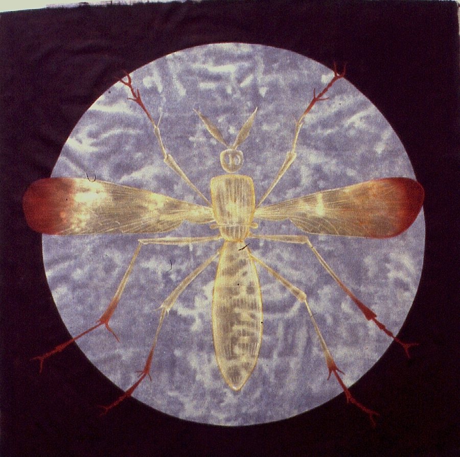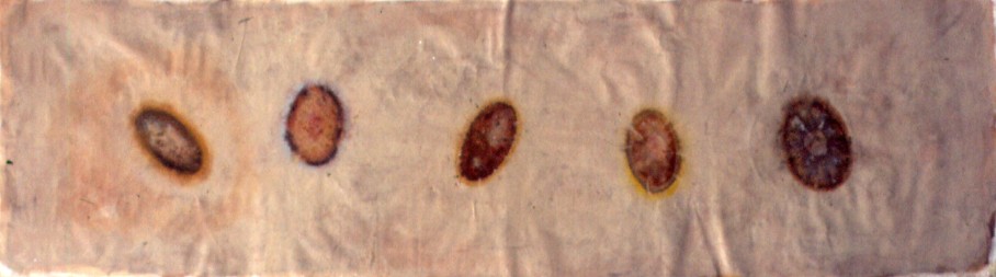 From a series of paintings made in 1998 by pouring different tints and dilutions of paint onto muslin cloth as it was draped over various objects at various angles.